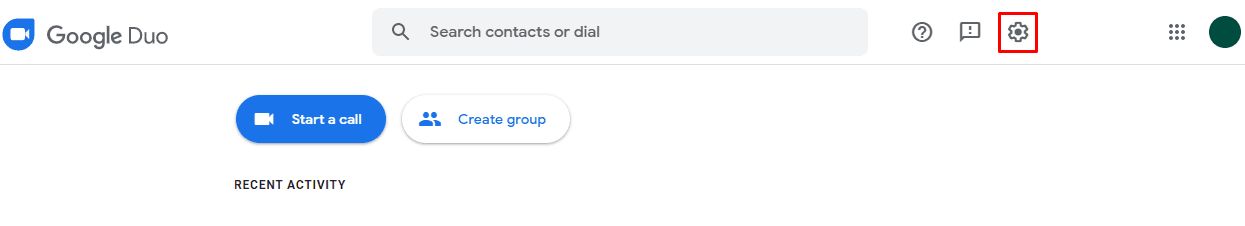Si desea evitar que Google Duo guarde automáticamente los mensajes multimedia en su dispositivo, puede hacerlo a través de la configuración. Para abrir la configuración, haga clic en el icono de la rueda dentada en la esquina superior derecha.